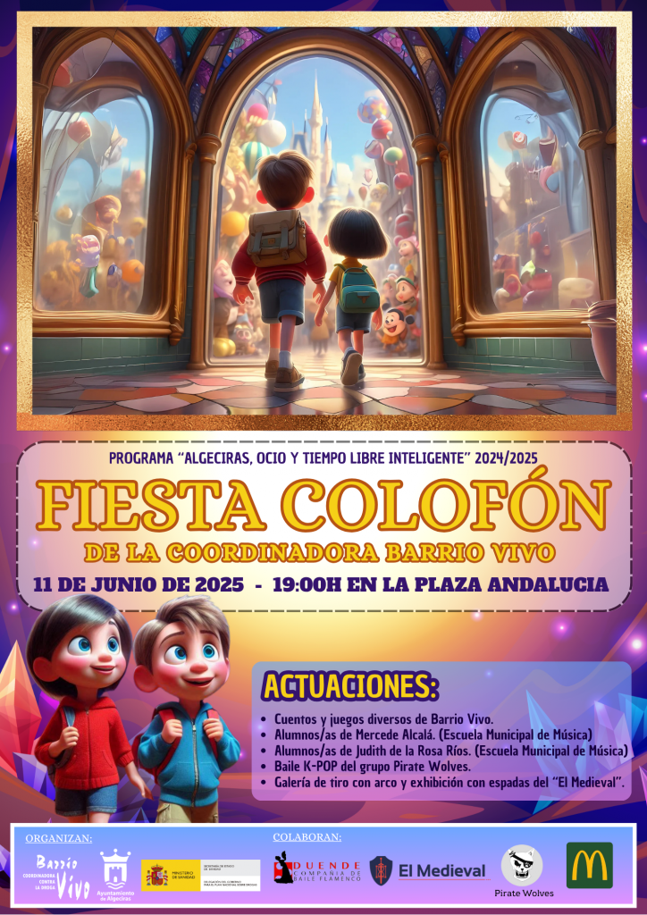 ¡Llega nuestra Fiesta Colofón! Un cierre de curso muy especial para celebrar el esfuerzo, el crecimiento y los momentos compartidos con todos los niños, niñas y jóvenes que han formado parte de nuestras actividades durante el año. Desde la Coordinadora Barrio Vivo queremos hacer de esta tarde una verdadera fiesta comunitaria: con música, baile, juegos, …